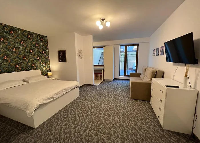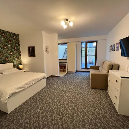 The apartment also features a kitchen with facilities. Coroni Studio Cu Jacuzzi Pe Terasa is situated around 7 km from Brasov train station and a short way from Belvedere bus station. Guests will enjoy having a private swimming pool on site.